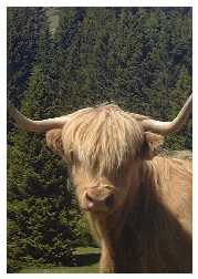 Keine Angst : die kommen nicht tiefgefroren aus Schottland herein, sonder sie stammen aus unserer eigenen Zucht. Wir haben uns eine kleine Herde dieser Tiere angeschafft, welche für alle sichtbar auf unserem eigenen Grund weidet – schon oft war dies für Touristen ein Grund zum Aussteigen und Fotografieren.....